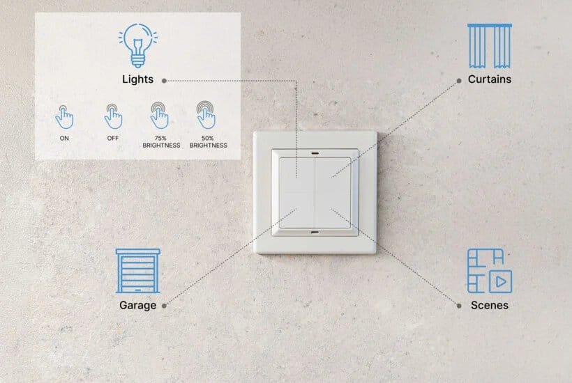 Shelly BLU Wall Switch 4 gives you precise control over your curtains, blinds, shutters, and dimming lights. Adjust your curtains through the customizable button presses that can set their exact position. Similarly, the dimming feature allows you to tailor brightness to match any activity and create the ideal ambiance every time.