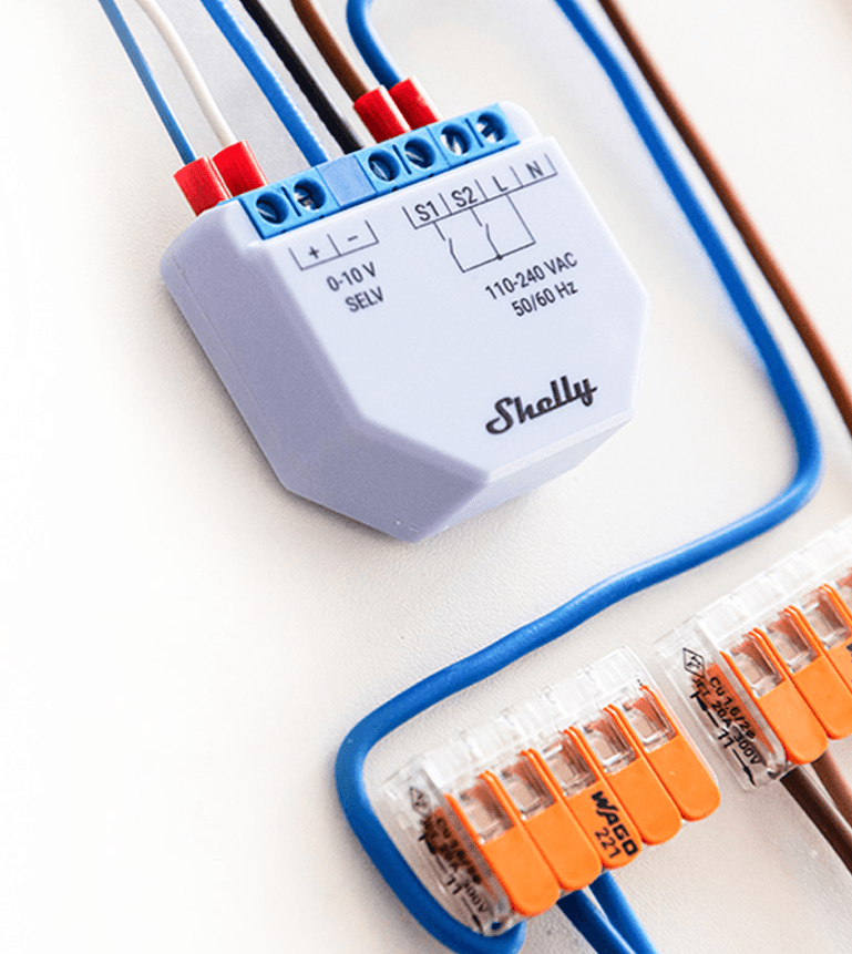 No need to invest in new, specialized dimmer switches that clash with your home’s aesthetic. Now, even buttons that weren’t originally designed for dimming can work with Shelly Plus 0-10V Dimmer. You can use your favorite style and brands of switches and seamlessly integrate dimming capabilities into your current setup.