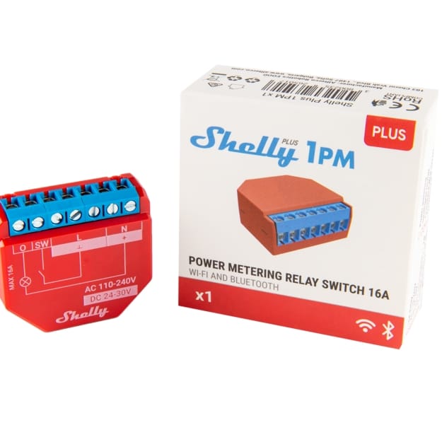Shelly Plus 1PM provides precise monitoring of power consumption.