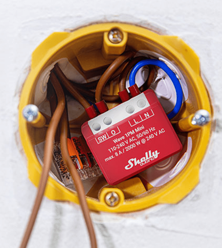 Wave Mini devices open a world of possibilities, allowing you to seamlessly integrate them into even the most tightly packed spaces and switch boxes. Thanks to their reduced size, Wave Mini devices fit effortlessly into all kinds of electrical boxes, including Danish wall boxes. Furthermore, they can be discreetly installed directly within the appliance you want to control or monitor.