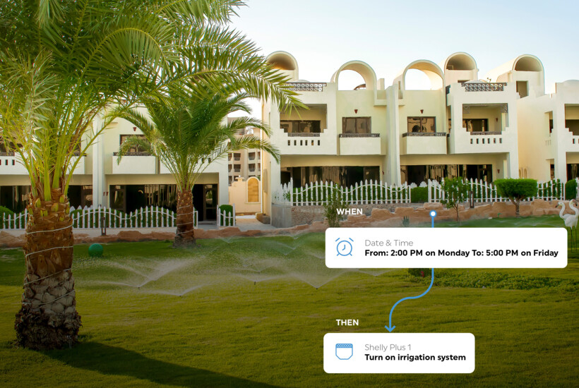 There is nothing that guests find more relaxing than a beautiful garden. However, the maintenance of a green and fresh yard might be a significant investment. Shelly smart solutions for hotels allow you to optimize the gardening costs by automating the irrigation system. You can set custom weekly or daily watering schedules, and the scripting functionalities will allow you to set your irrigation system to follow the weather conditions and water the garden area only when it is sunny, skipping the rainy days.